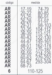 | Medidas | AR 17-19 – 74-79, AR 20-22 – 80-85, AR 23-25 – 86-91, AR 26-28 – 91-97, AR 29-31 – 98-103, AR 32-35 – 104-112, AR 36-39 – 113-121, AR 40-43 – 122-130, AR 44-47 – 149-161, AR 48-51 – 162-174, AR 52-55 – 175-187, AR 56-59 – 214-226, AR 60-63 – 279-292, AR 64-67 – 293-304, AR 68-73, 6 110-125 |