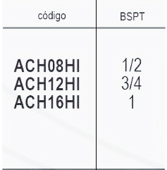 ACH08HI – 1/2, ACH12HI – 3/4, ACH16HI – 1