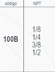 | Codigo | 100B 1/8, 100B 1/4, 100B 3/8, 100B 1/2, 100B 3/4 |