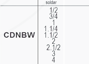 | Codigo | CDN 1/2, CDN 3/4, CDN 1, CDN 1.1/4, CDN 1.1/2, CDN 2, CDN 3, CDN 4 |
