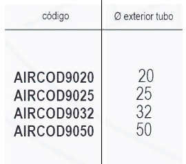 | Codigo | AIRCOD9020 20, AIRCOD9025 25, AIRCOD9032 32, AIRCOD9050 50 |