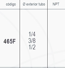 | Codigo | 465F 1/4, 465F 3/8, 465F 1/2 |