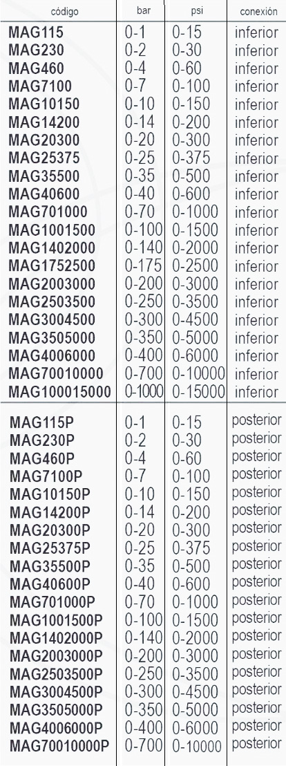 | Codigo | MAG-1-15, MAG-2-30, MAG-4-60, MAG-7-100, MAG-10-150, MAG-14-200, MAG-20-300, MAG-25-375, MAG-35-500, MAG-40-600, MAG-70-1000, MAG-100-1500, MAG-140-2000, MAG-175-2500, MAG-250-3500, MAG-300-4500, MAG-350-5000, MAG-400-6000, MAG-700-10000, MAG-1-15-P, MAG-2-30-P, MAG-4-60-P, MAG-7-100-P, MAG-10-150-P, MAG-14-200-P, MAG-20-300-P, MAG-25-375-P, MAG-35-500-P, MAG-40-600-P, MAG-70-1000-P, MAG-100-1500-P, MAG-140-2000-P, MAG-250-3500-P, MAG-300-4500-P, MAG-350-5000-P, MAG-400-6000-P, MAG-700-10000-P |