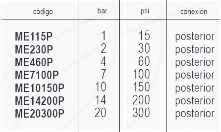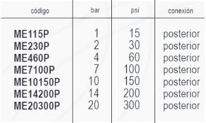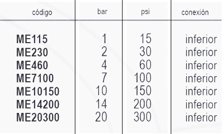 | Codigo | ME115 1 – 15 – inferior, ME230 2 – 30 – inferior, ME460 4 – 60 – inferior, ME7100 7 – 100 – inferior, ME10150 10 – 150 – inferior, ME14200 14 – 200 – inferior, ME20300 20 – 300 – inferior, ME115P 1 – 15 – posterior, ME230P 2 – 30 – posterior, ME460 4 – 60 – posterior, ME7100P 7 – 100 – posterior, ME10150 10 – 150 – posterior, ME14200P 14 – 200 – posterior, ME20300 20 – 300 – posterior |