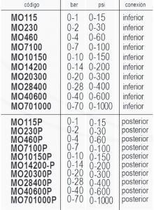 | Codigo | MO115 – 0-1 – 0-15 – inferior, MO230 – 0-2 – 0-30 – inferior, MO460 – 0-4 – 0-60 – inferior, MO7100 – 0-7 – 0-100 – inferior, MO10150 – 0-10 – 0-150 – inferior, MO14200 – 0-14 – 0-200 – inferior, MO20300 – 0-20 – 0-300 – inferior, MO28400 – 0-28 – 0-400 – inferior, MO40600 – 0-40 – 0-600 – inferior, MO701000 – 0-70 – 0-1000 – inferior, MO115P – 0-1 – 0-15 – posterior, MO230P – 0-2 – 0-30 – posterior, MO460P – 0-4 – 0-60 – posterior, MO7100P – 0-7 – 0-100 – posterior, MO10150P – 0-10 – 0-150 – posterior, MO14200P – 0-14 – 0-200 – posterior, MO20300P – 0-20 – 0-300 – posterior, MO28400P – 0-28 – 0-400 – posterior, MO40600P – 0-40 – 0-600 – posterior, MO701000P – 0-70 – 0-1000 – posterior |