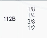 | Codigo | 112B 1/8, 112B 1/4, 112B 3/8, 112B 1/2 |