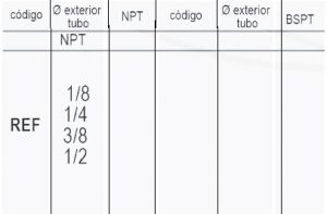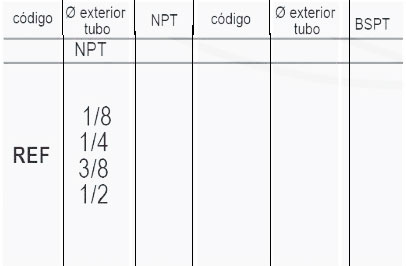| Codigo | REF-1/8, REF-1/4, REF-3/8, REF-1/2 |