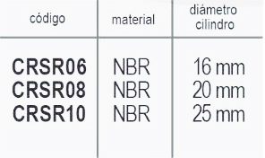 | Medidas | CRSR06 – NBR – 16mm, CRSR08 – NBR – 20mm, CRSR10 – NBR – 25mm |