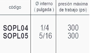 | Codigo | SO04PL 1/4 – 300, SO05PL 5/16 – 300 |