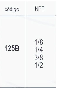 | Codigo | 125B 1/8, 125B 1/4, 125B 3/8, 125B 1/2 |