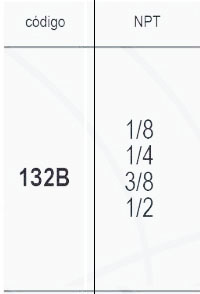 | Codigo | 132B 1/8, 132B 1/4, 132B 3/8, 132B 1/2 |