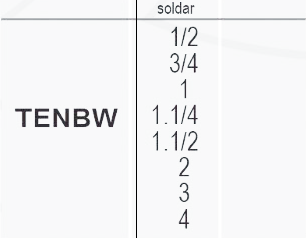 TEN 1/2, TEN 3/4, TEN 1, TEN 1.1/4, TEN 1.1/2, TEN 2, TEN 3, TEN 4