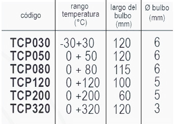 Material: bulbo y capilar de acero inoxidable AISI 316