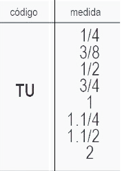 TU-1/4, TU-3/8, TU-1/2, TU-3/4, TU-1, TU-1.1/4, TU-1.1/2, TU-2
