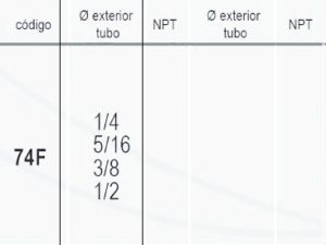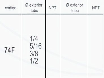 | Codigo | 74F 1/4, 74F 5/16, 74F 3/8, 74F 1/2 |