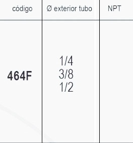 | Codigo | 464F 1/4, 464F 3/8, 464F 1/2 |