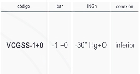 | Codigo | VCGSS-1+0 -1+0 – -30" Hg+O – inferior |