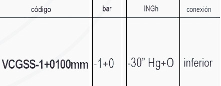 | Codigo | VCGSS-1+0100mm -1+0 – -30" Hg+0 – inferior |