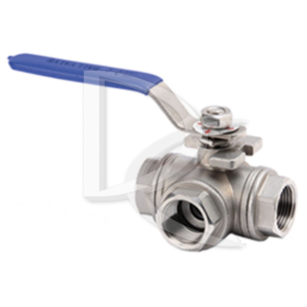 Descripción: válvula de esfera paso total de 3 vías con accionamiento manual