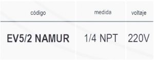 | Código | EV-5/2 NAMUR 1/4 NPT – 220V |